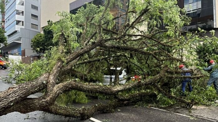 Queda de árvore no bairro Capoeiras, em Florianópolis, na quinta-feira