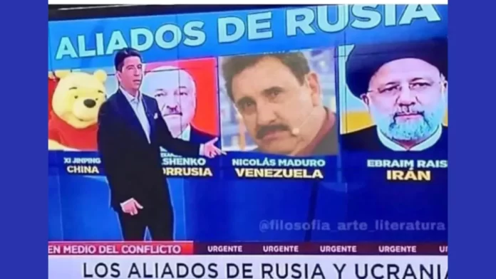 Na versão original da reportagem, aparecem corretamente as fotos de Nicolás Maduro, do presidente da China, Xi Jinping, do então presidente do Irã, Ebrahim Raisi, e do presidente da Bielorrússia, Alexander Lukashenko. Já na imagem que viralizou, os rostos de Maduro e Xi Jinping foram substituídos, respectivamente, pelo apresentador Ratinho e pelo personagem Ursinho Pooh, uma figura frequentemente usada em memes políticos envolvendo o líder chinês.