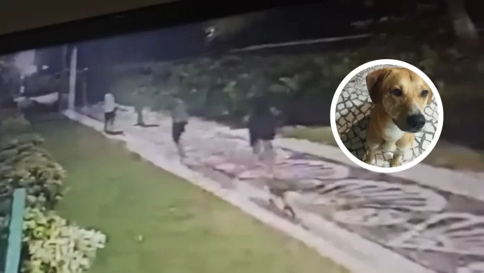 Durante o vídeo, é possível perceber que o portão abre duas vezes para o Caramelo sair do prédio. Em uma das vezes, ele vai em direção ao grupo de jovens.